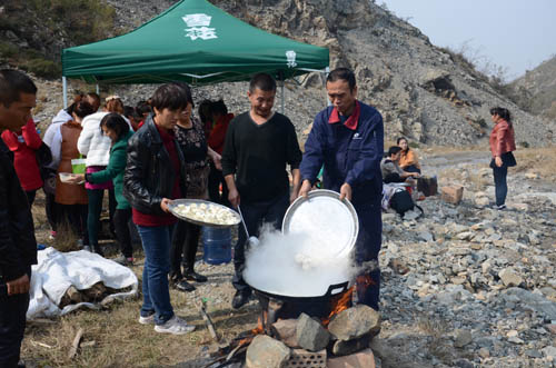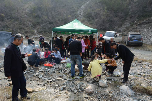 大約1個(gè)小時(shí)的時(shí)間,大家紛紛從山上下來(lái),到達(dá)野炊地點(diǎn)開(kāi)始共同制******心大餐。同志們熱情高漲,分工明確,一幅其樂(lè)融融的景象,不一會(huì)兒,愛(ài)心大餐便已出鍋,大家品嘗著自己的勞動(dòng)成果,感覺(jué)格外香甜。