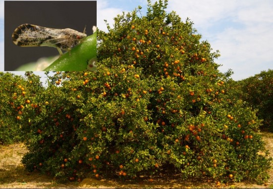 值得注意的是,砍挖黃龍病樹前必須先噴藥殺滅病樹上的木虱成蟲,避免將帶病木虱成蟲驅(qū)趕到健康樹上。采果后應(yīng)該立即進(jìn)行冬季清園殺滅木虱。臺風(fēng)雨或暴雨過后也要注意及時殺木虱。柑橘木虱成蟲具有遠(yuǎn)距離遷飛的能力,在臺風(fēng)雨季節(jié)和強對流天氣(5~9月),東南部黃龍病嚴(yán)重地區(qū)的木虱成蟲,會被風(fēng)刮起,遠(yuǎn)距離被動遷飛。鄰近黃龍病果園的木虱成蟲也會被大風(fēng)刮起,飛到果園中,因此臺風(fēng)雨和暴風(fēng)雨過后,天晴時應(yīng)立即噴藥殺木虱。