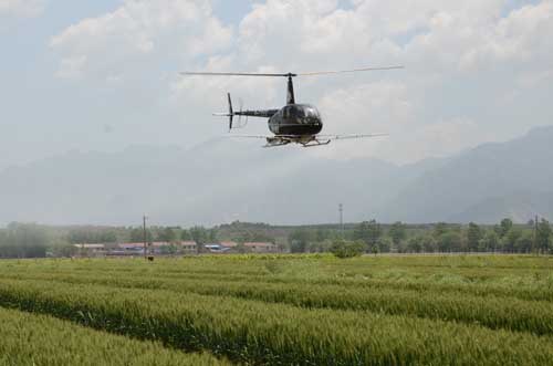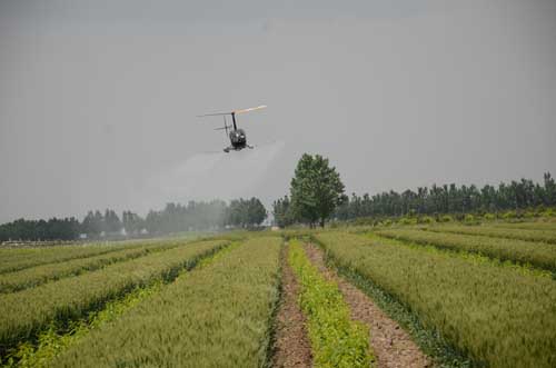 5月份是小麥形成產(chǎn)量的關(guān)鍵時(shí)期,也是病蟲(chóng)害防治的關(guān)鍵時(shí)期。5月8日起,山西運(yùn)城綠康實(shí)業(yè)有限公司利用專(zhuān)業(yè)化統(tǒng)防統(tǒng)治手段,在山西省聞喜、永濟(jì)、翼城、洪洞等地依次進(jìn)行小麥蚜蟲(chóng)飛防實(shí)驗(yàn),這次飛防地點(diǎn)的選定主要是農(nóng)田面積比較集中,且周?chē)迩f相對(duì)稀疏,沒(méi)有過(guò)高建筑物的地方,非常適合飛機(jī)噴藥的田塊進(jìn)行。